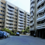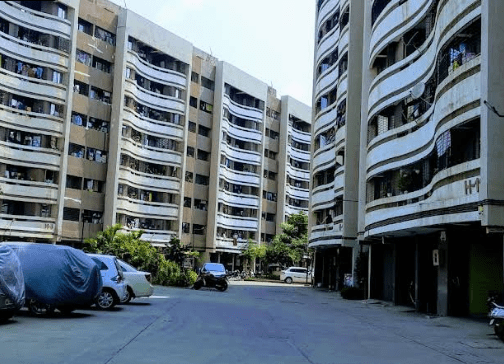An architectural overview of a contemporary apartment township, featuring distinct curved balcony designs and organized parking zones. This project emphasizes functional exterior aesthetics and thoughtful site planning, creating a structured yet welcoming atmosphere for modern families.